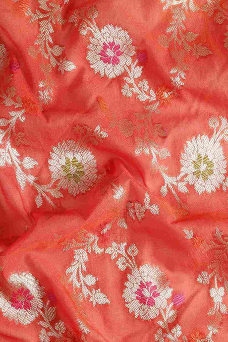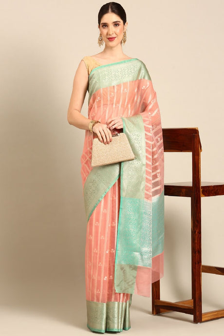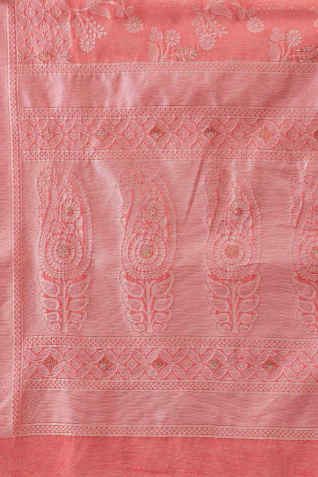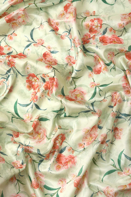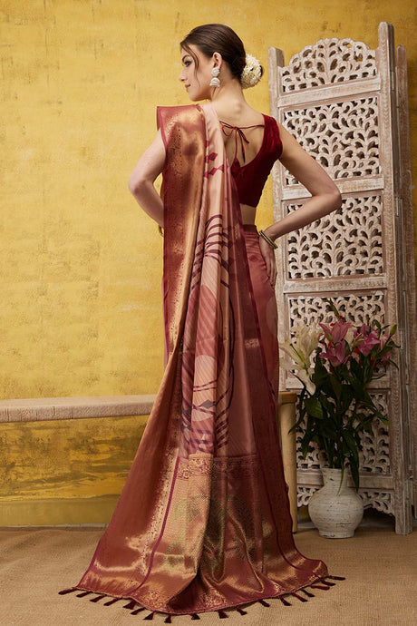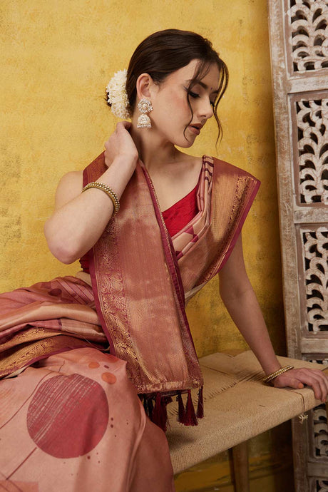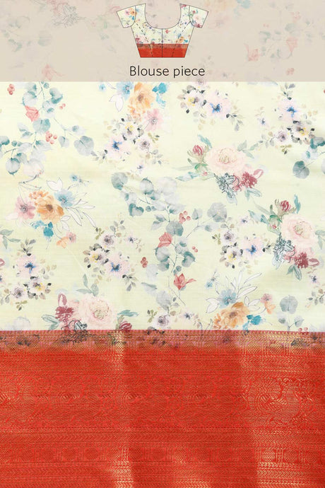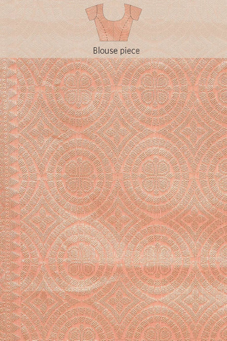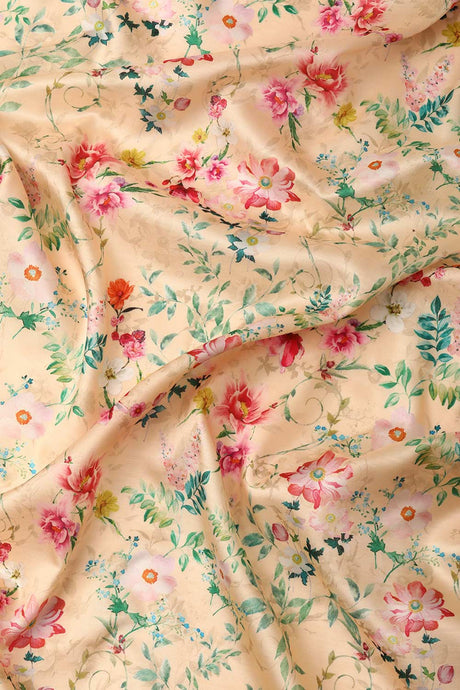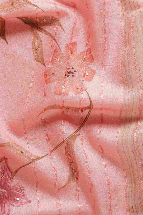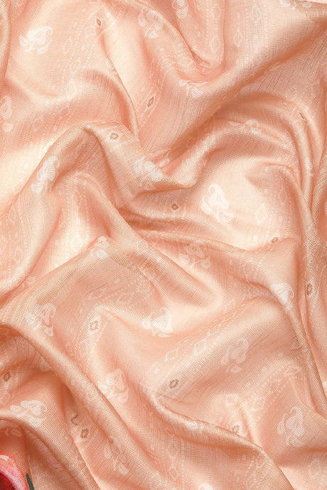 Women's Peach Cotton Silk Floral Digital Print Saree