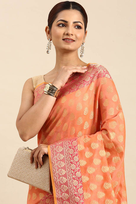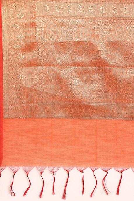 Orange Kota Doriya(Semi Cotton) Doriya Saree