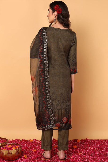 Green Organza Floral Embroidered Straight Cut Suit Set