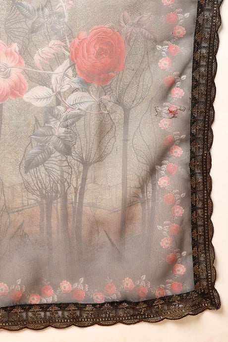 Beige Printed Organza Anarkali Suit Set