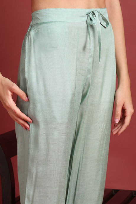 Green Embroidered Organza Palazzo Suit Set