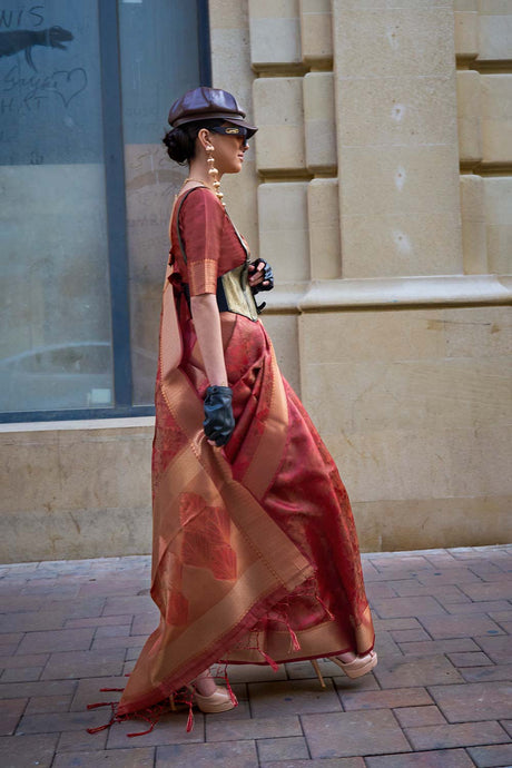 Sale price $89.00 USD Regular price $102.00Unit price /UnavailableKahana Red Organza Woven Saree