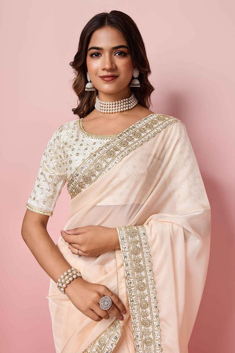 Sale price $87.00 USD Regular price $100.00Unit price /UnavailableKadvika Beige Organza Woven Saree