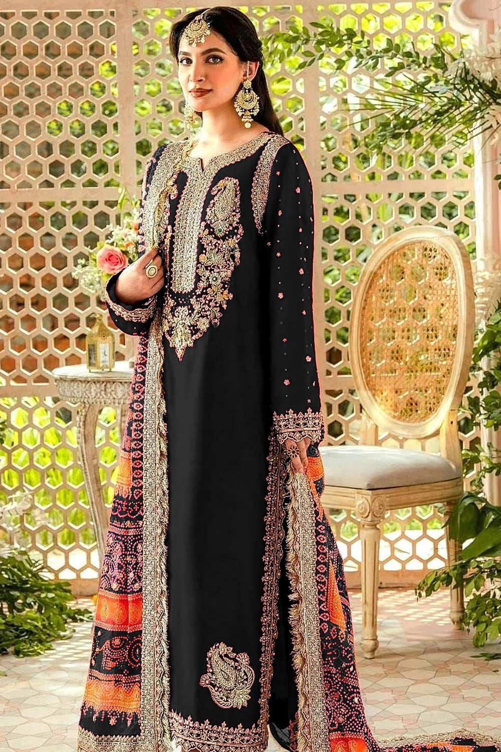 Black Embroidered Georgette Pakistani Suit Set