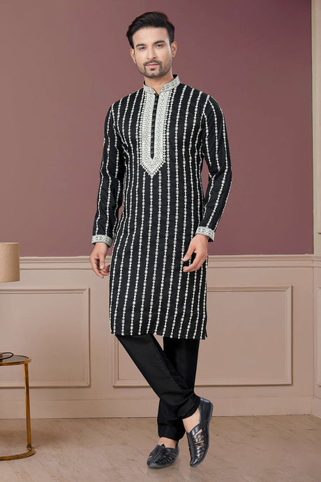 Black Sequin with Embroidered Silk Kurta Pyjama Set