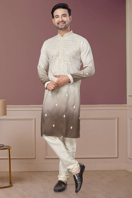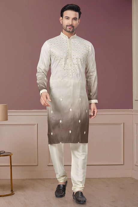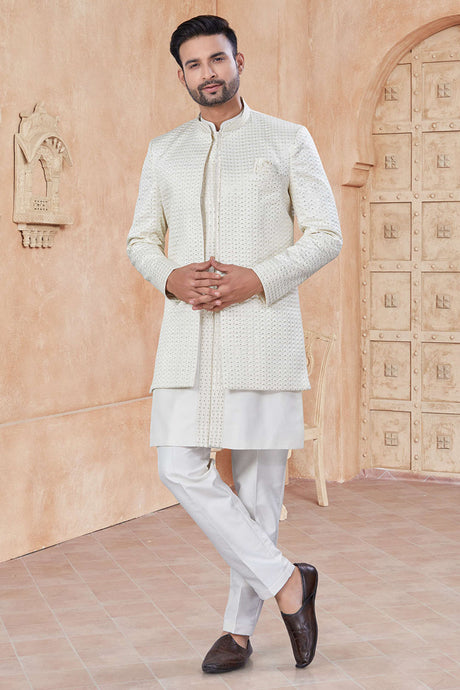 Cream Sequin with Embroidered Silk Kurta Pyjama Set