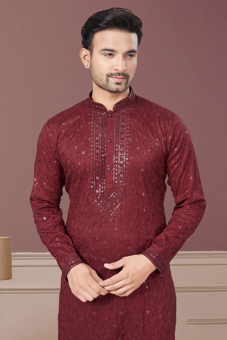 Maroon Sequin with Embroidered Silk Kurta Pyjama Set