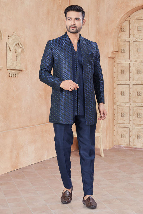 Navy-Blue Sequin with Embroidered Silk Kurta Pyjama Set