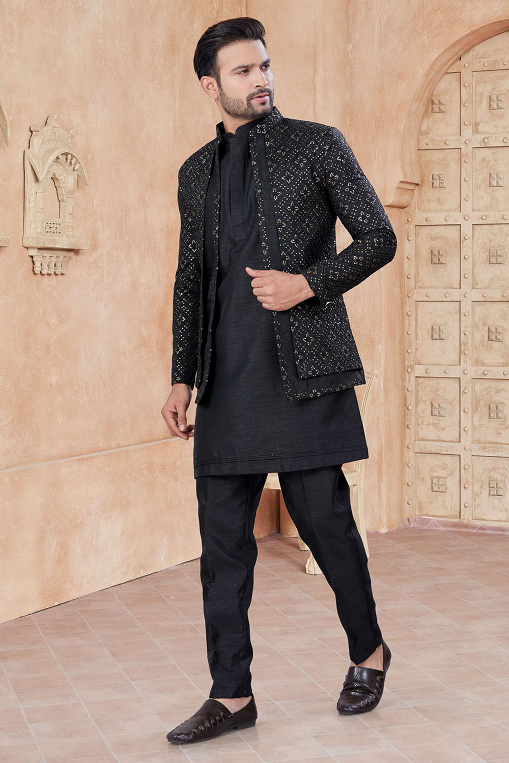 Black Sequin with Embroidered Silk Kurta Pyjama Set