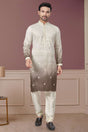 Cream Sequin with Embroidered Silk Kurta Pyjama Set