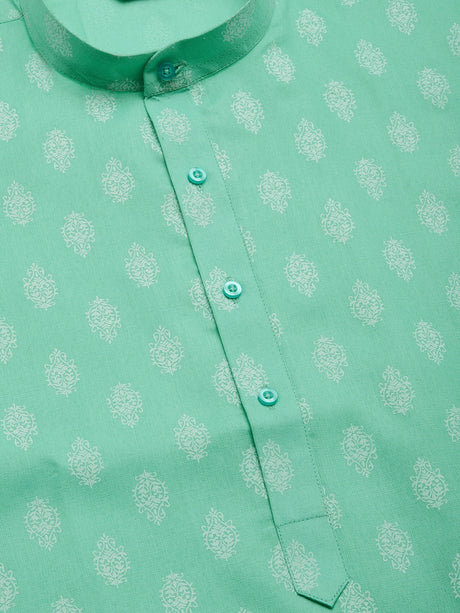 Men's Green Cotton Blend Printed Kurta Set