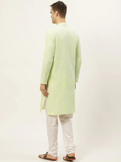 Men's Green Cotton Embellished Kurta Set