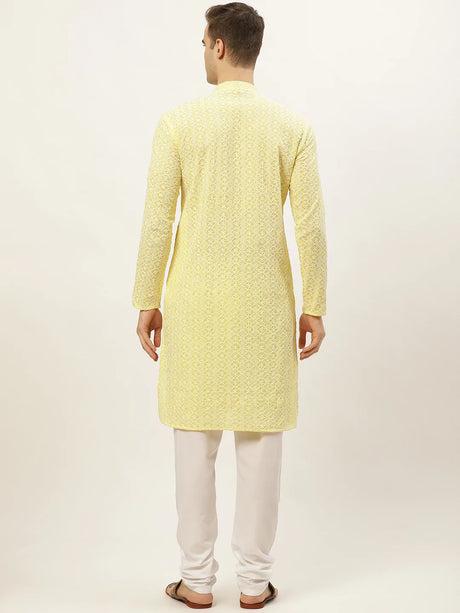 Men's Yellow Cotton Embellished Kurta Set