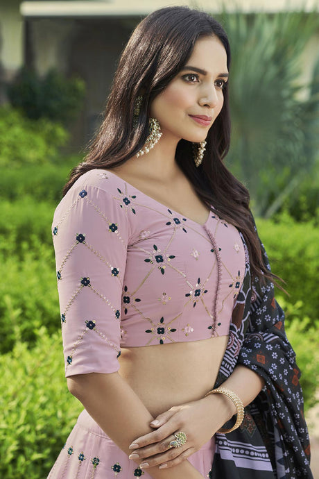 Dusty Pink Georgette Thread And Sequin Embroidery Work Lehenga Choli