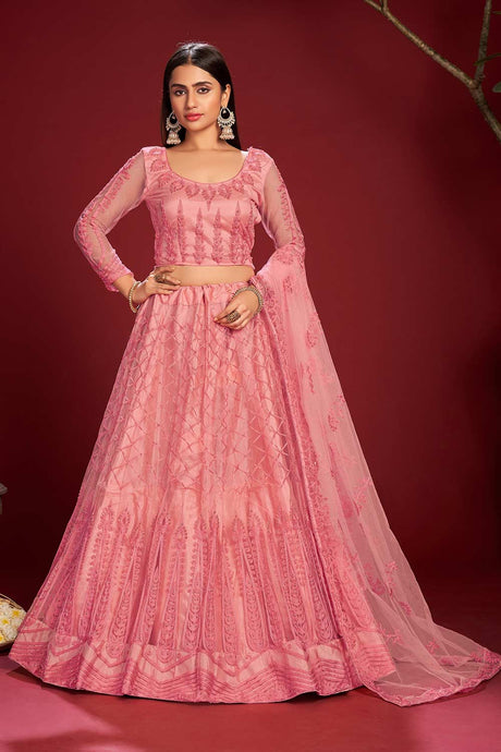 Net Embroidery Lehenga Choli In Pink
