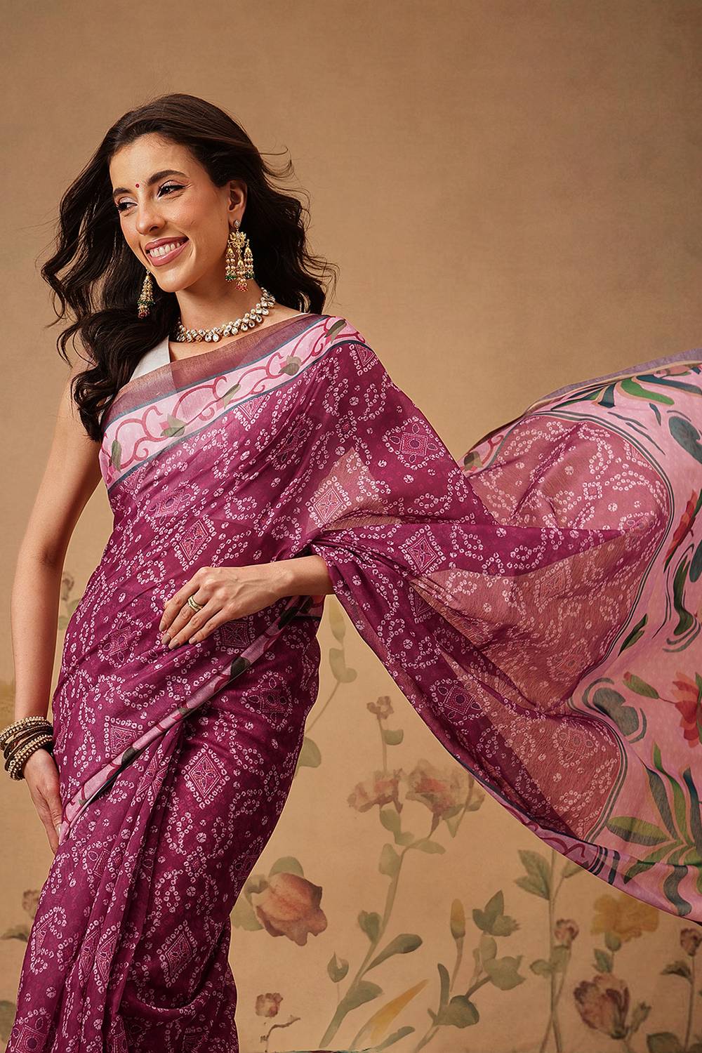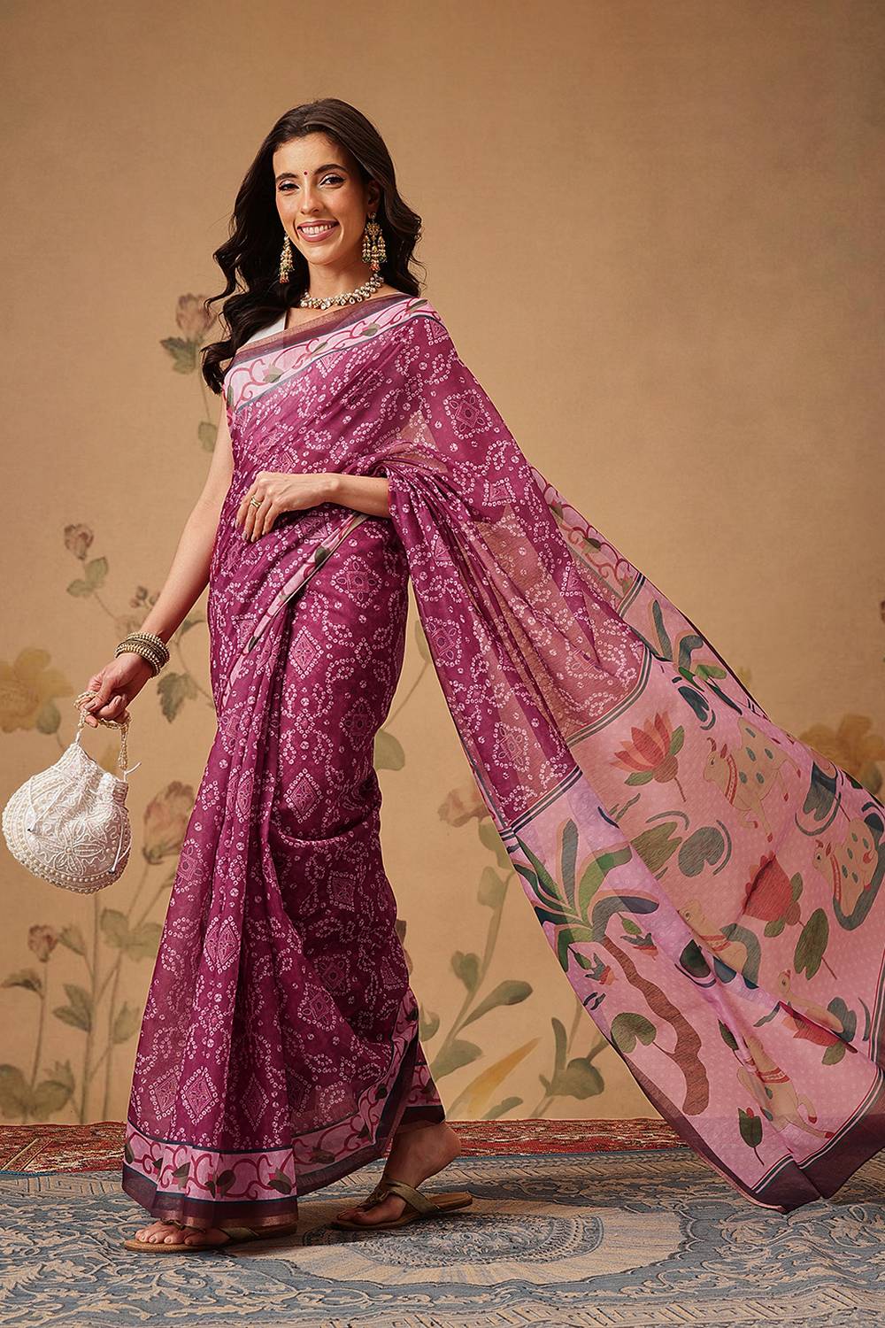 Elevate your wardrobe with our exquisite Saree a masterpiece crafted to add timeless elegance to your style. Made from Cotton Blend this saree offers a perfect mix of comfort and sophistication. Adorned with Bandhani Printed it showcases intricate craftsmanship that speaks volumes of tradition and artistry. Perfect for Casual this saree is a versatile addition to your collection, ensuring you stand out effortlessly. Pair it with elegant Jewelry, for a glamorous look. Add Clutches or Potli Bags and complete the ensemble with Wedges & Heels , making it a perfect choice for any event. Make a statement and embrace the elegance of Saree today