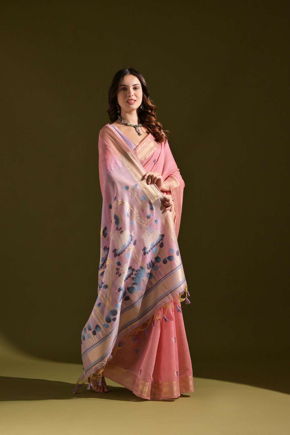 Elevate your wardrobe with our exquisite Saree, a masterpiece crafted to add timeless elegance to your style. Made from Muga Cotton this saree offers a perfect mix of comfort and sophistication. Adorned with Woven it showcases intricate craftsmanship that speaks volumes of tradition and artistry. Perfect for Party this saree is a versatile addition to your collection, ensuring you stand out effortlessly. Pair it with elegant Jewelry, for a glamorous look. Add Clutches or Potli Bags and complete the ensemble with Wedges & Heels , making it a perfect choice for any event. Make a statement and embrace the elegance of Saree today