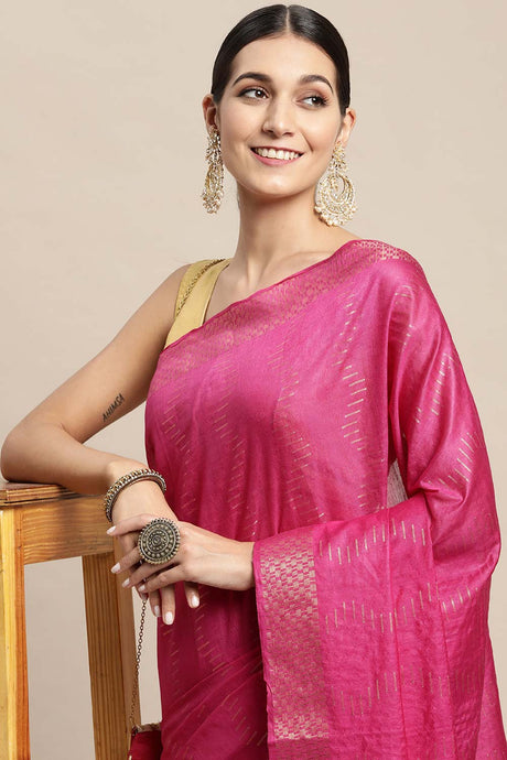 Pink Silk Blend Bhagalpuri Woven Design Saree