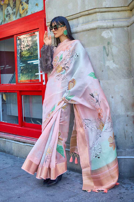 Pink Soft Art Silk Floral Printed Banarasi Saree