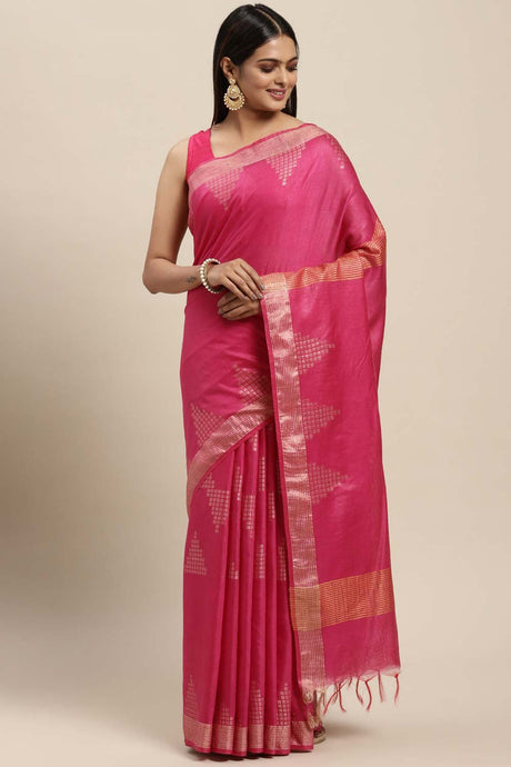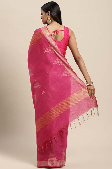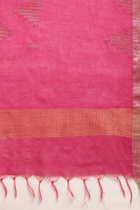 Cotton Blend Woven Saree In Pink