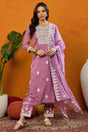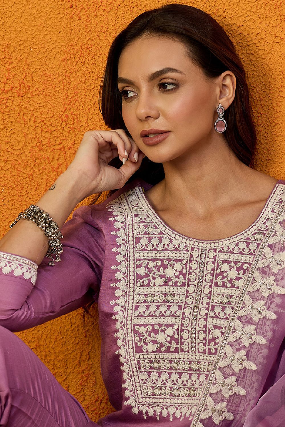 Pink Silk Blend Solid Embroidered Straight Cut Suit Set