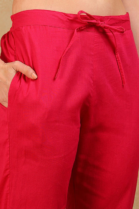 Pink Rayon Blend Solid Embroidered Straight Cut Suit Set