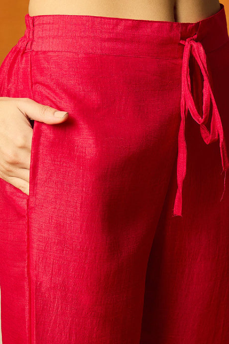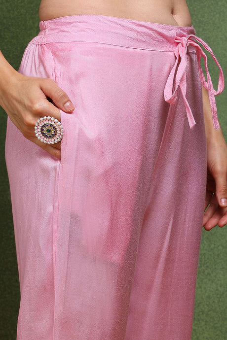 Pink Silk Blend Solid Embroidered Straight Cut Suit Set