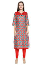 Red juccard yoke with red and green all over prnted kurti highlighted green tassals.