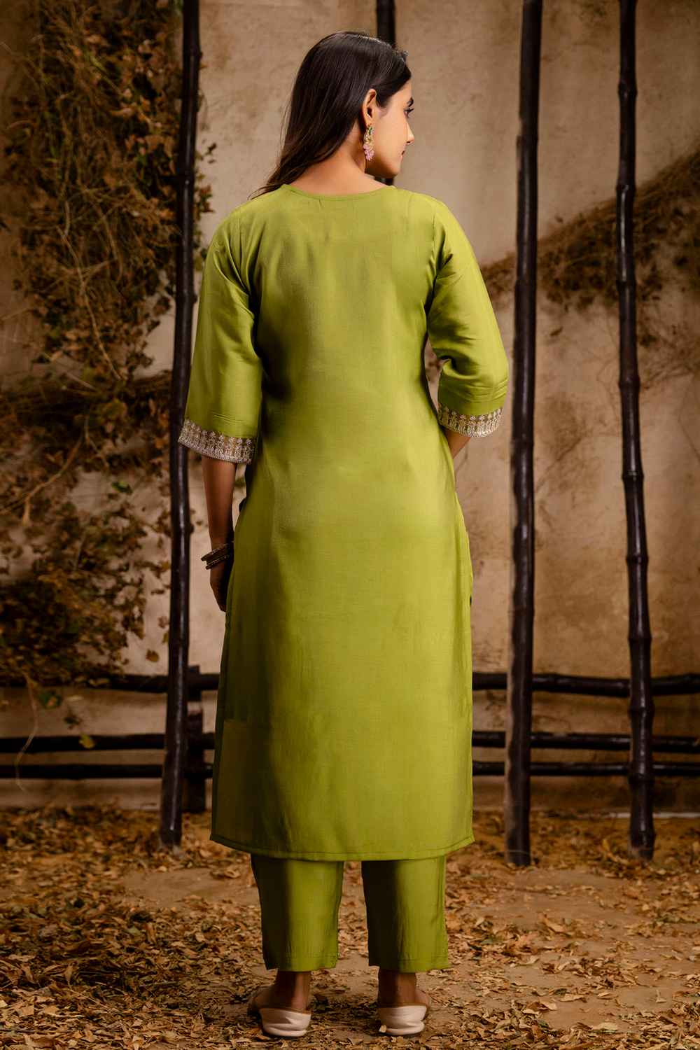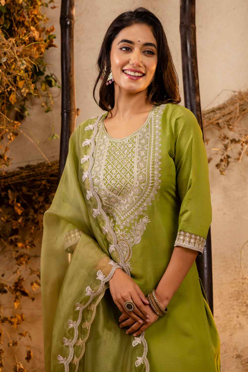 Step into effortless style with our Straight Cut Suit Set crafted for the modern woman who cherishes tradition. Made from soft Silk Blend it keeps you comfortable all day long. The Embroidered design lends a touch of sophistication to your outfit. Perfect for Festive this salwar suit is a must-have for versatile styling options. Style it with minimalistic accessories and flats for a casual look or jewelry and heels for special events