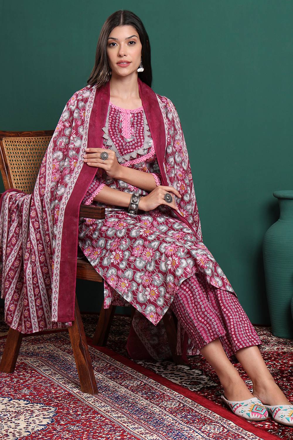 Step into effortless style with our Straight Cut Suit Set crafted for the modern woman who cherishes tradition. Made from soft Cotton it keeps you comfortable all day long. The Floral Printed design lends a touch of sophistication to your outfit. Perfect for Casual this Straight Cut Suit Set is a must-have for versatile styling options. Style it with minimalistic accessories and flats for a casual look