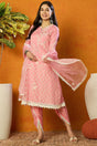 Pink Organza Solid Embroidered A Line Dhoti Style Suit Set