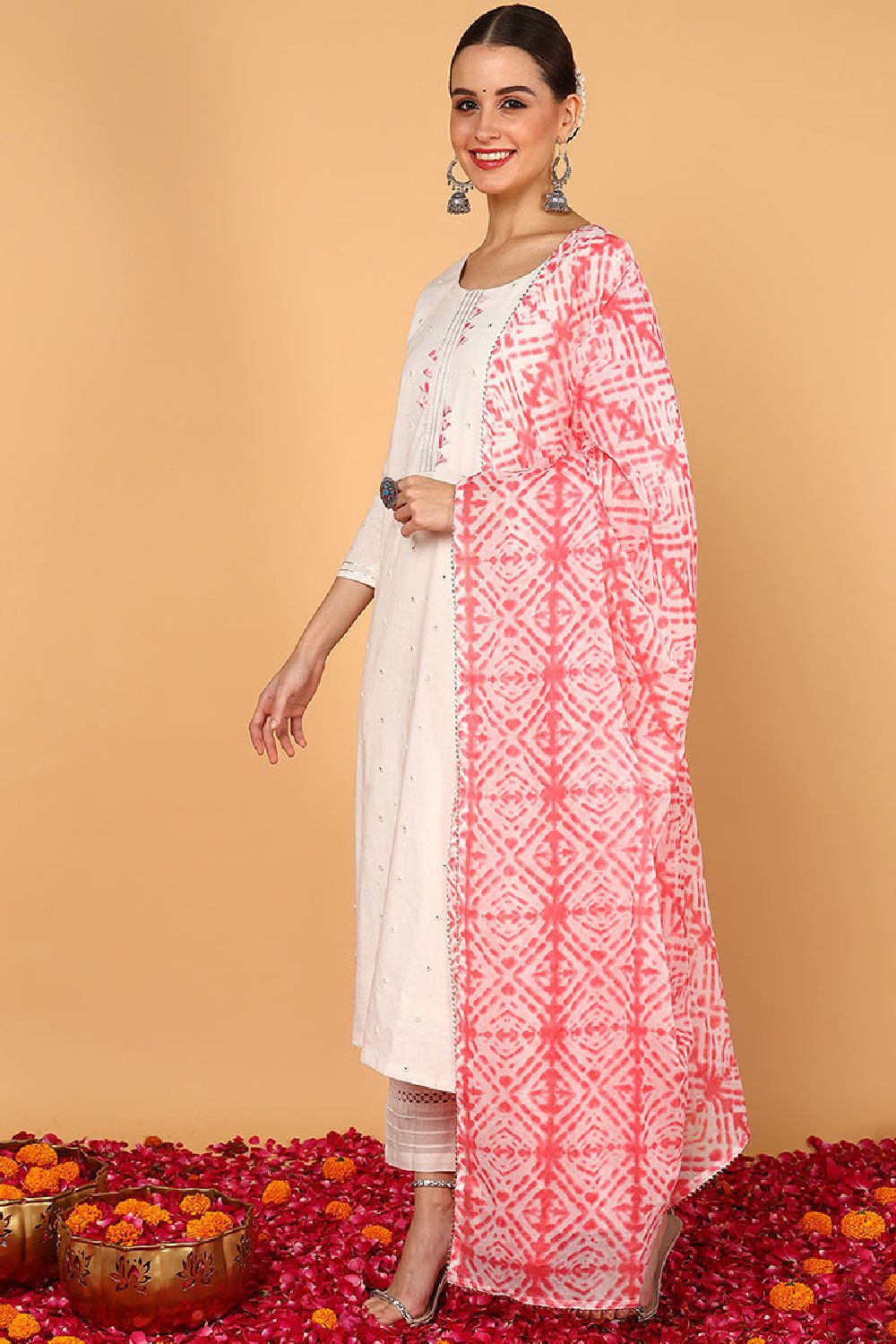 Pink Rayon Blend Solid Embroidered Straight Cut Suit Set