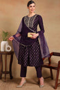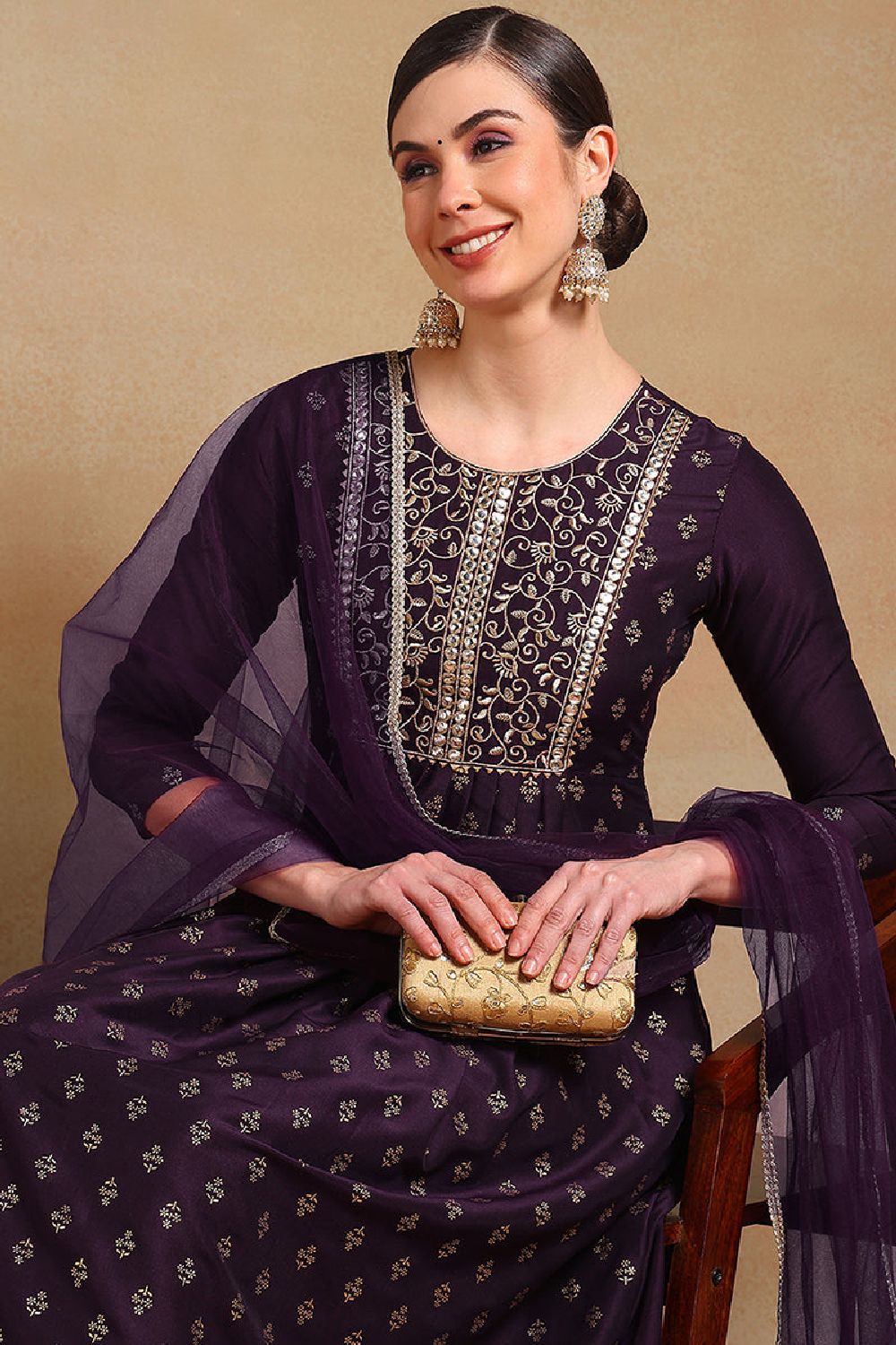 Purple Silk Blend Solid Woven Design Flared Empire Anarkali Suit Set