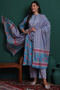 Turquoise Floral Printed Cotton Straight Cut Suit Set