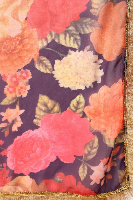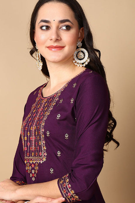 Purple Silk Blend Embroidered Straight Cut Suit Set