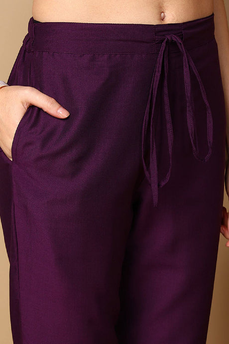 Purple Silk Blend Solid Embroidered Straight Cut Suit Set