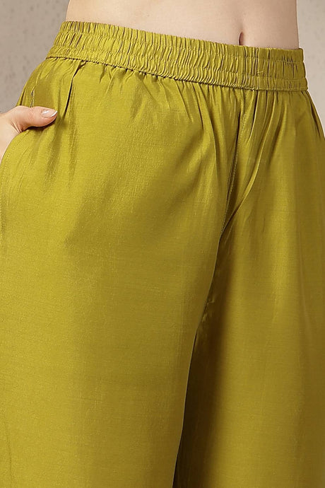 Green Silk Blend Solid Woven Design Flared Empire Kurti Pant Set