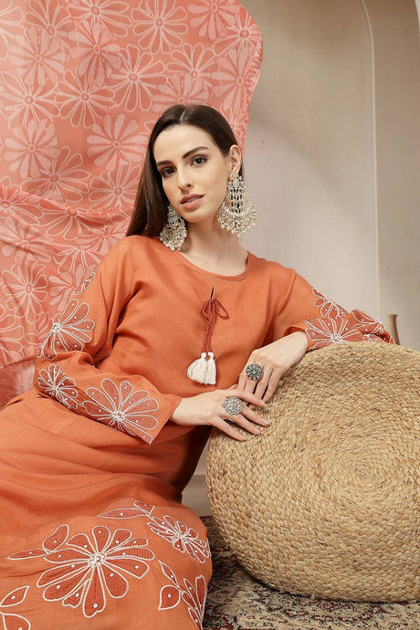 Rust Floral Printed Cotton Straight Cut Suit Set