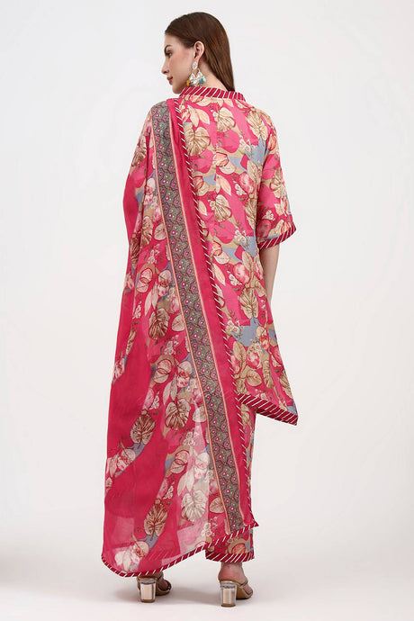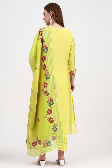 Yellow Floral Printed Silk Straight Cut Suit Set