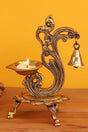 Brass Parrot Showpiece Diya With Bells And Stand