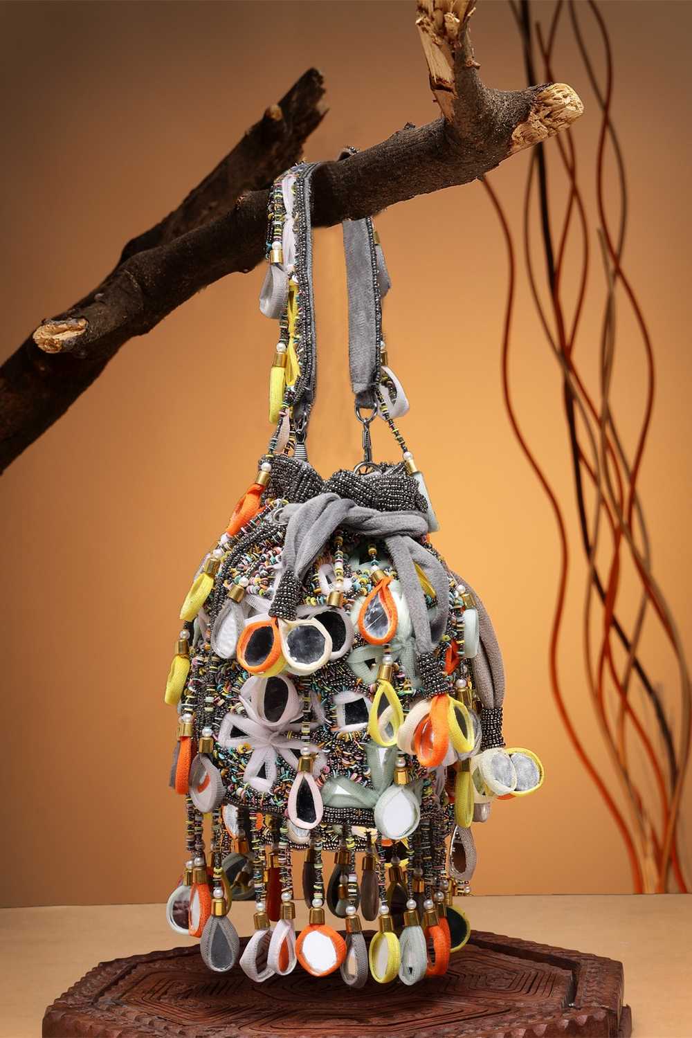 Stay stylish on the go with our Potli a must-have bag for every fashionista. Crafted from premium Fabric and adorned with Mirror Work Embellished this bag combines elegance and practicality. Whether for Wedding or daily use, it’s your ultimate style companion