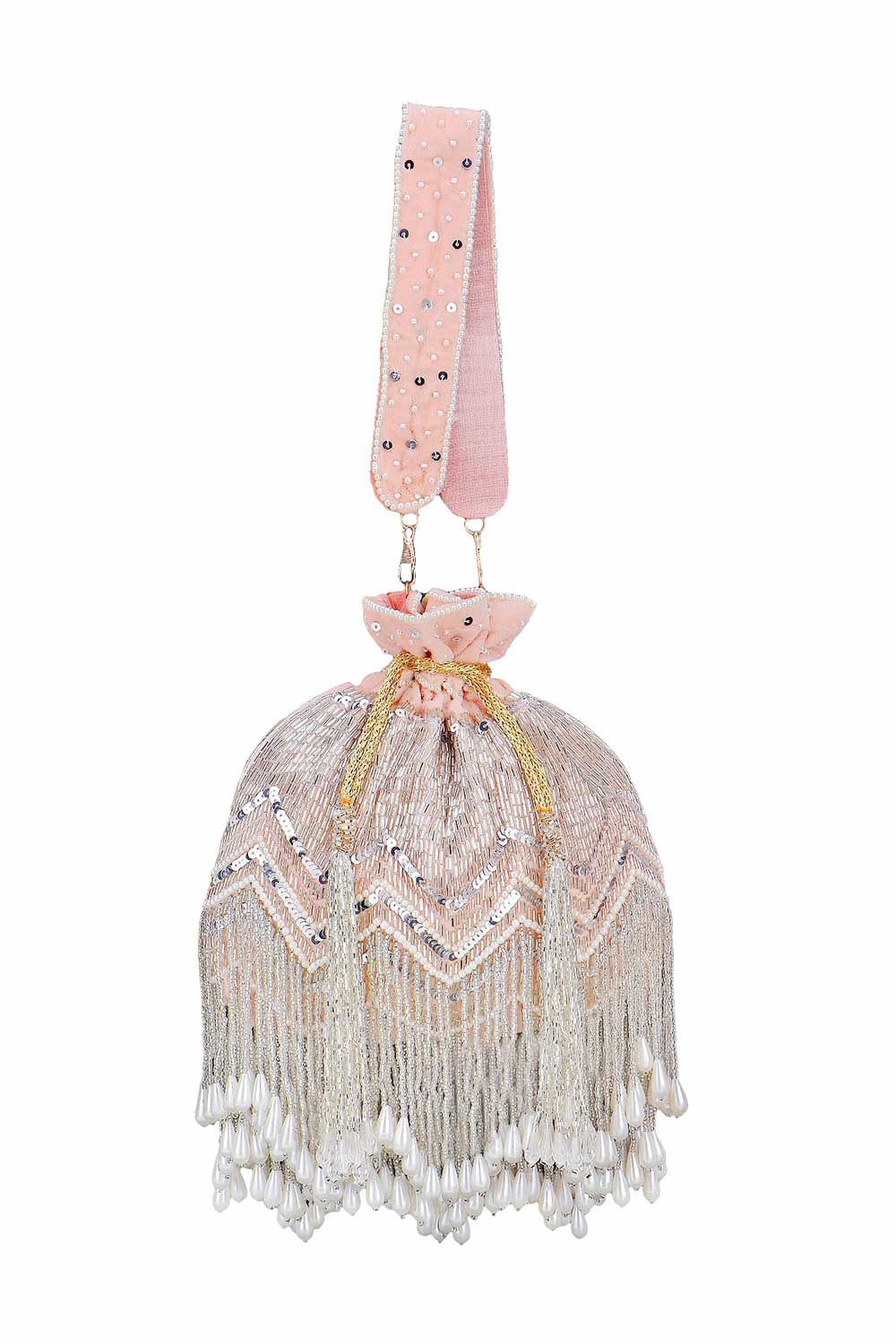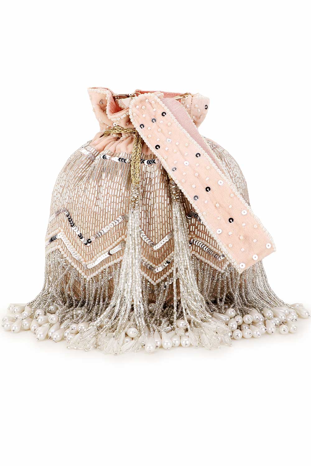 - Style: Chevron Embellished Potli with Drawstring Closure