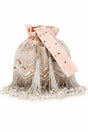 Peach And Silver Velvet Chevron Embellished Potli