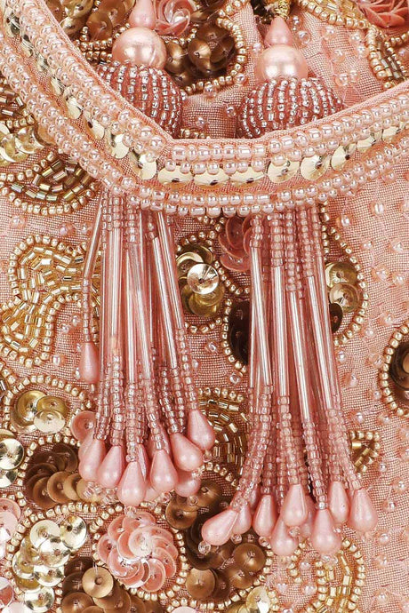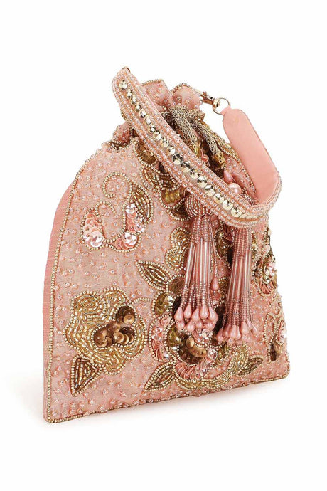 Dusky Pink And Gold Faux Silk Floral Embellished Potli
