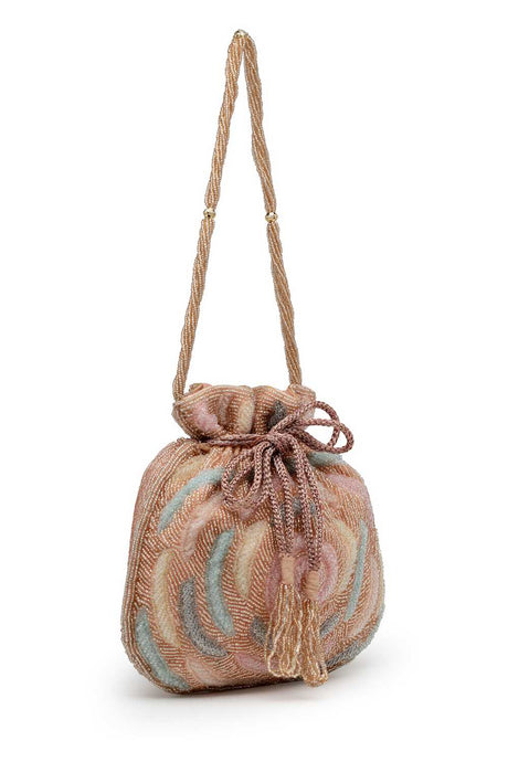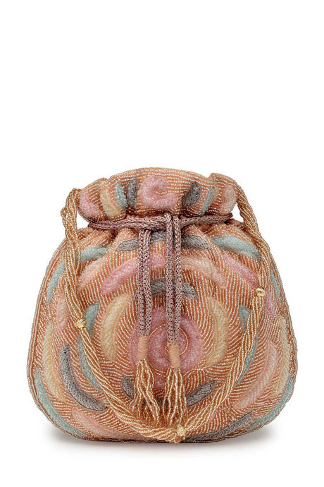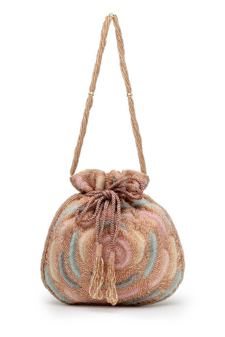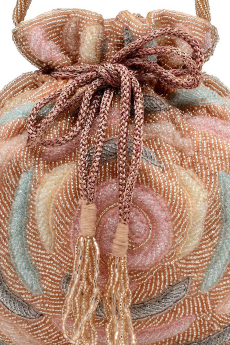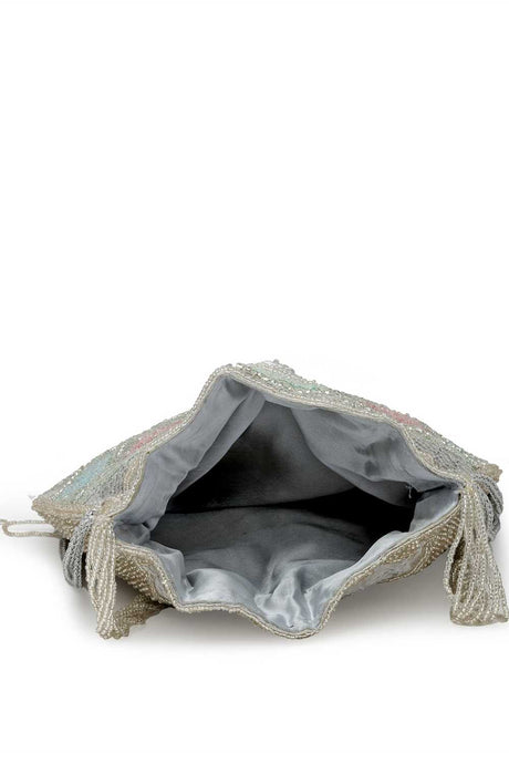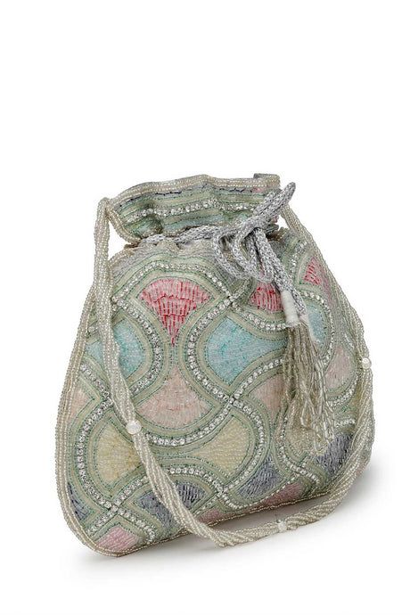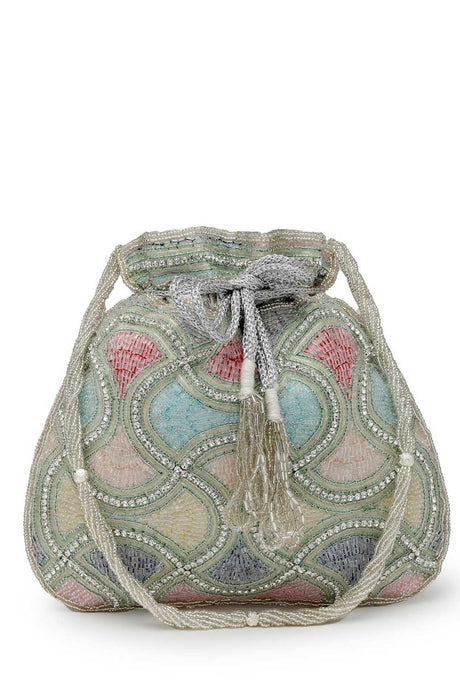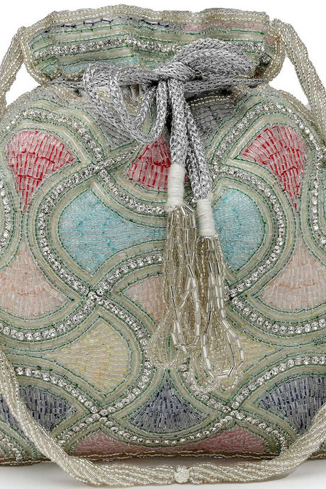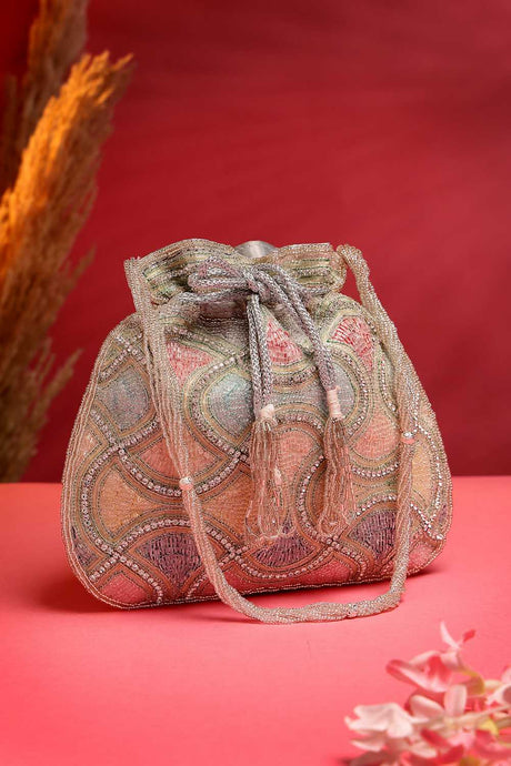 Multi Color Beads Embossed Faux Silk Potli