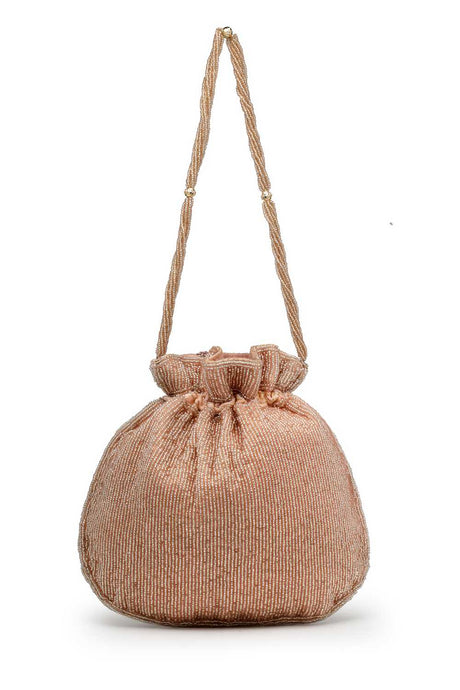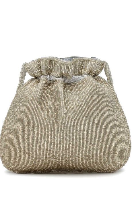 Gold Beads Embossed Faux Silk Potli