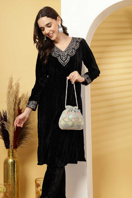 Multi Color Embroidered Velvet Potli