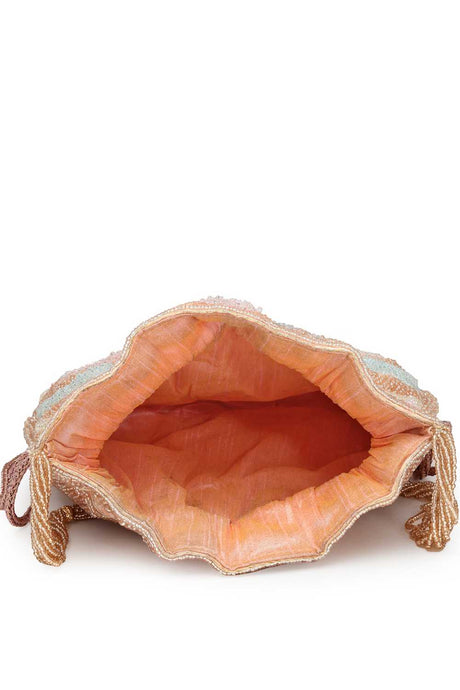 Peach Embellished Velvet Potli
