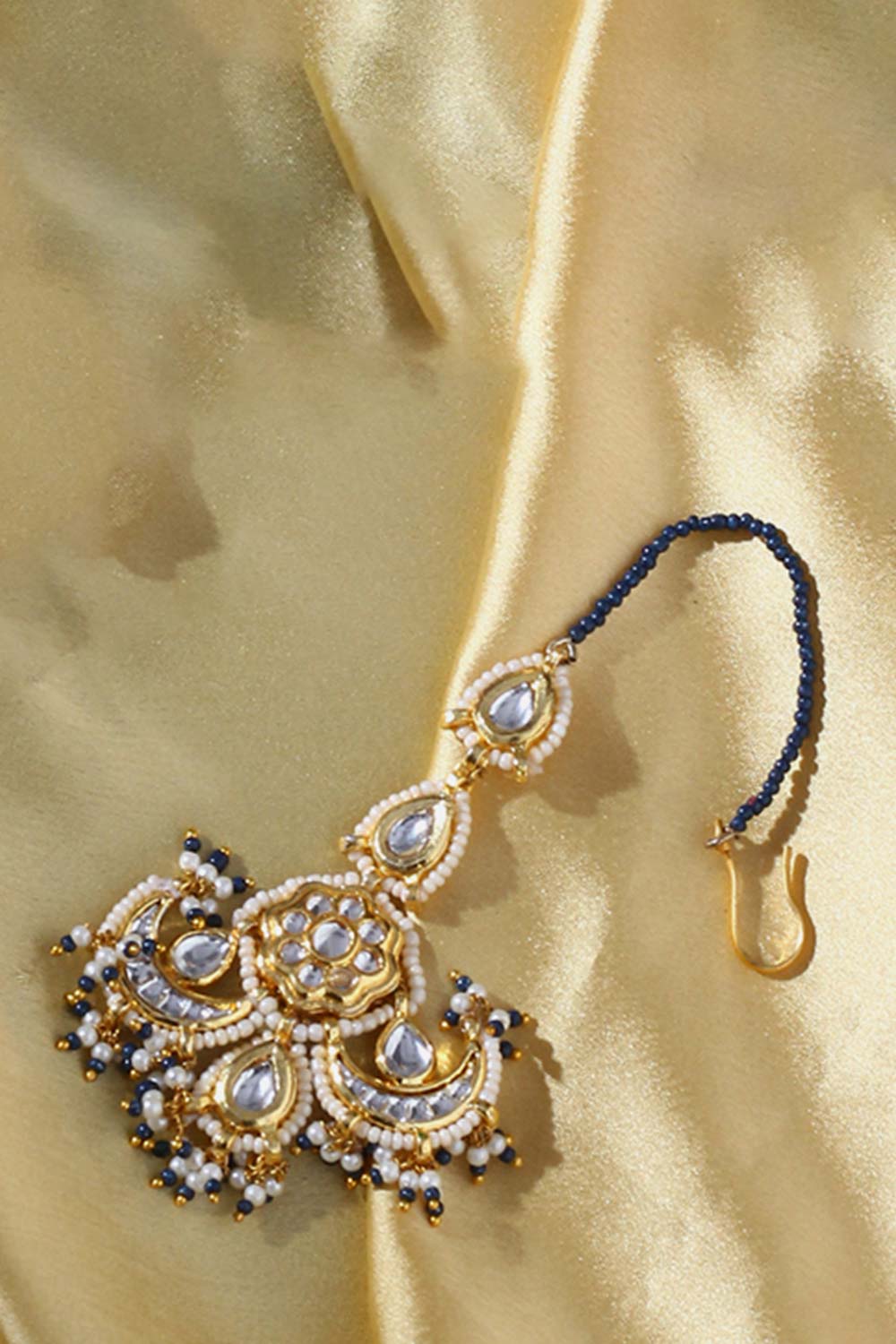 Blue And Cream Maang Tikka Head Jeweler With Kundan And Pearls