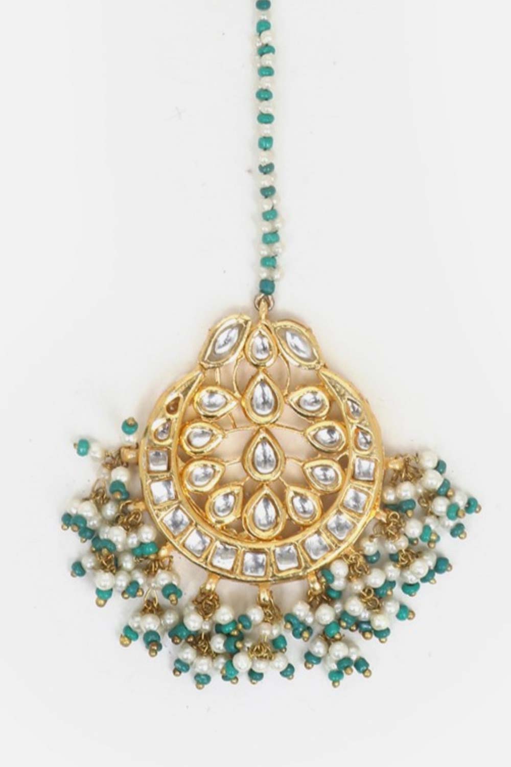 Green And Cream Maang Tikka Head Jeweler With Kundan And Pearls